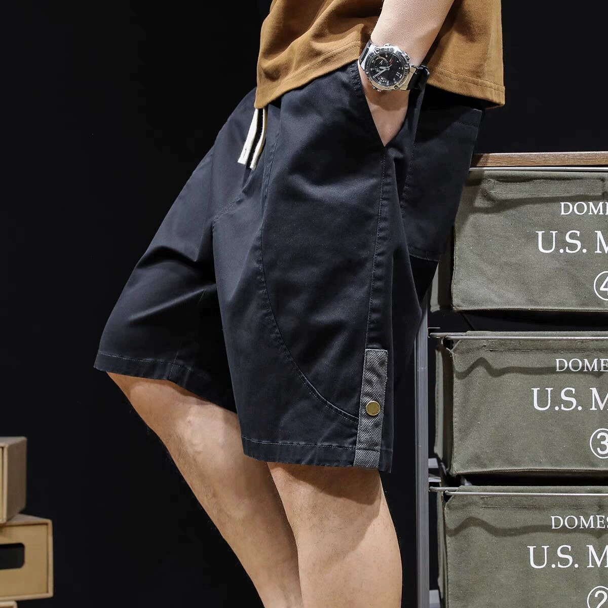 Trendy Japanese style retro stitching casual cargo shorts