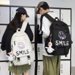 العصرية الجديدة كلية طالب حقيبة مدرسية أزياء شخصية الكرتون المطبوعة الحرم الجامعي حقيبة ظهر سعة كبيرة عارضة على ظهره