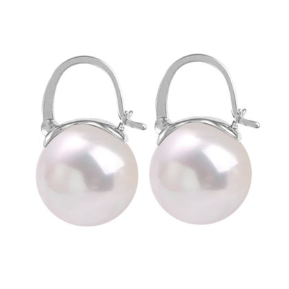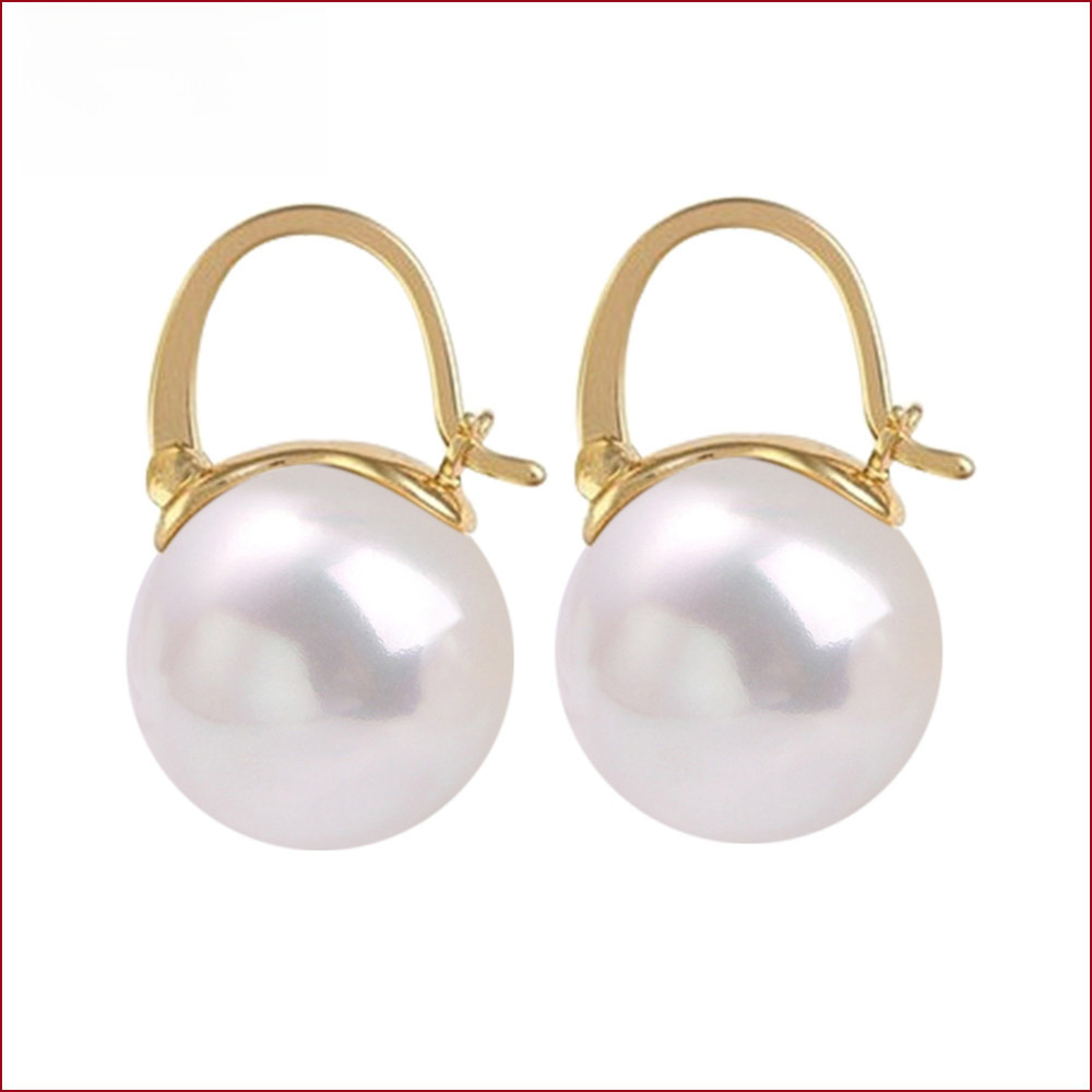 Trendy Simple White Bead Ear Buckle Women's European and American Distinctive Earrings Hong Kong-style Big Pearl Elegant High-end Ear Accessories