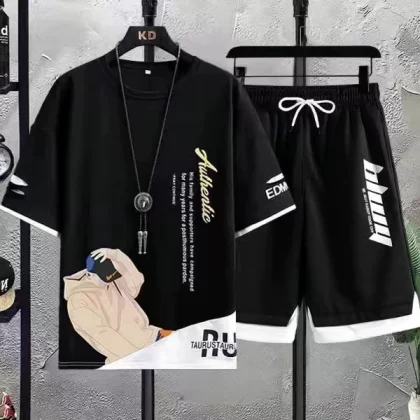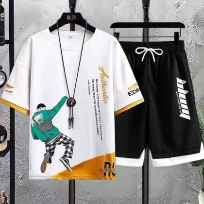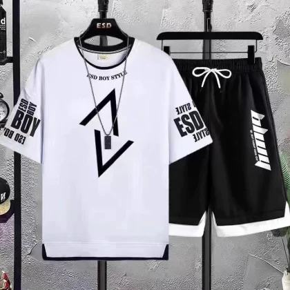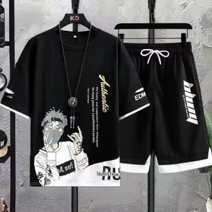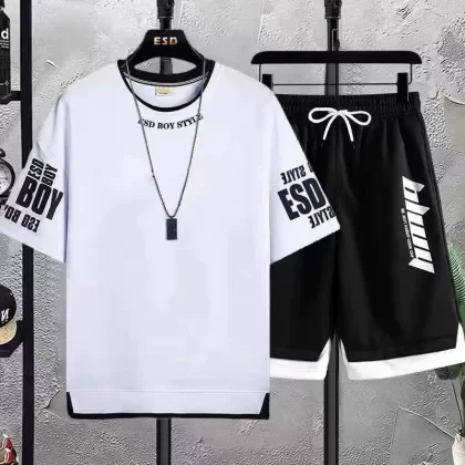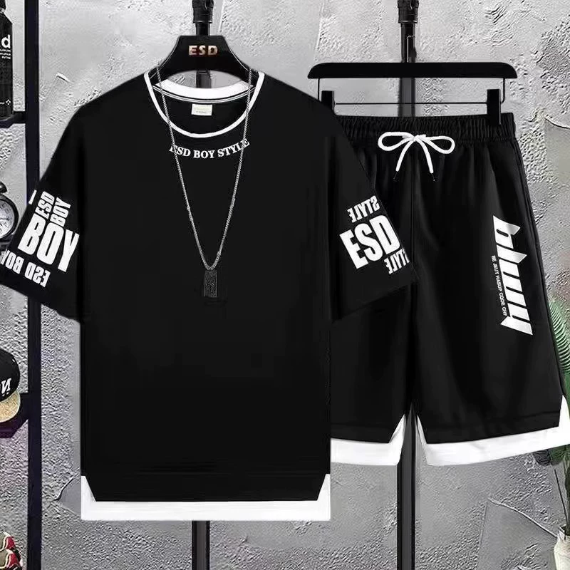 | nameOriginal | Trendy summer fake two-piece ice silk handsome short-sleeved shorts |