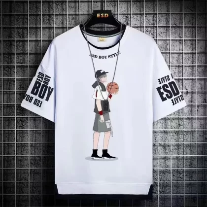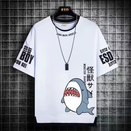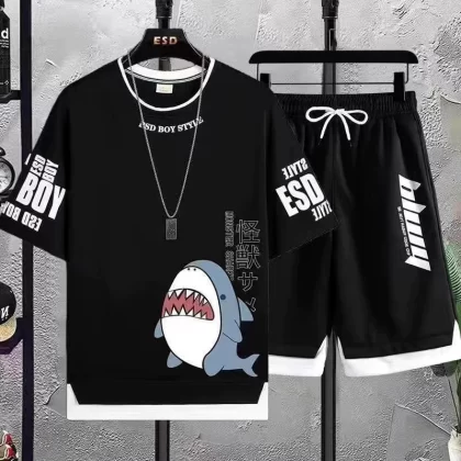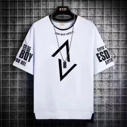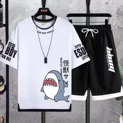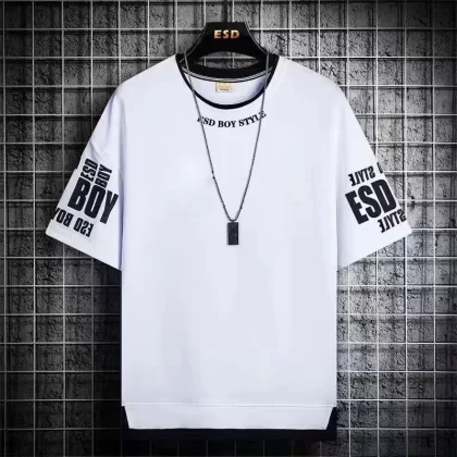 Trendy summer fake two-piece ice silk handsome short-sleeved shorts