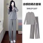 | nameOriginal | Trendy Summer New Style Small Ice Silk Hooded Sunscreen Top Casual Sportswear Wide Leg Pants Two-piece Suit Women |