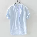 | nameOriginal | Trendy thin stand-collar short-sleeved casual top solid color linen |