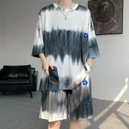 | nameOriginal | Trendy tie-dye cool summer large size sports suit for fat people |