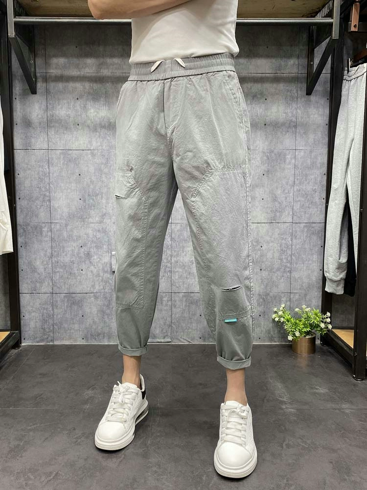 | nameOriginal | Trendy white ripped nine-point Korean style versatile dad pants |