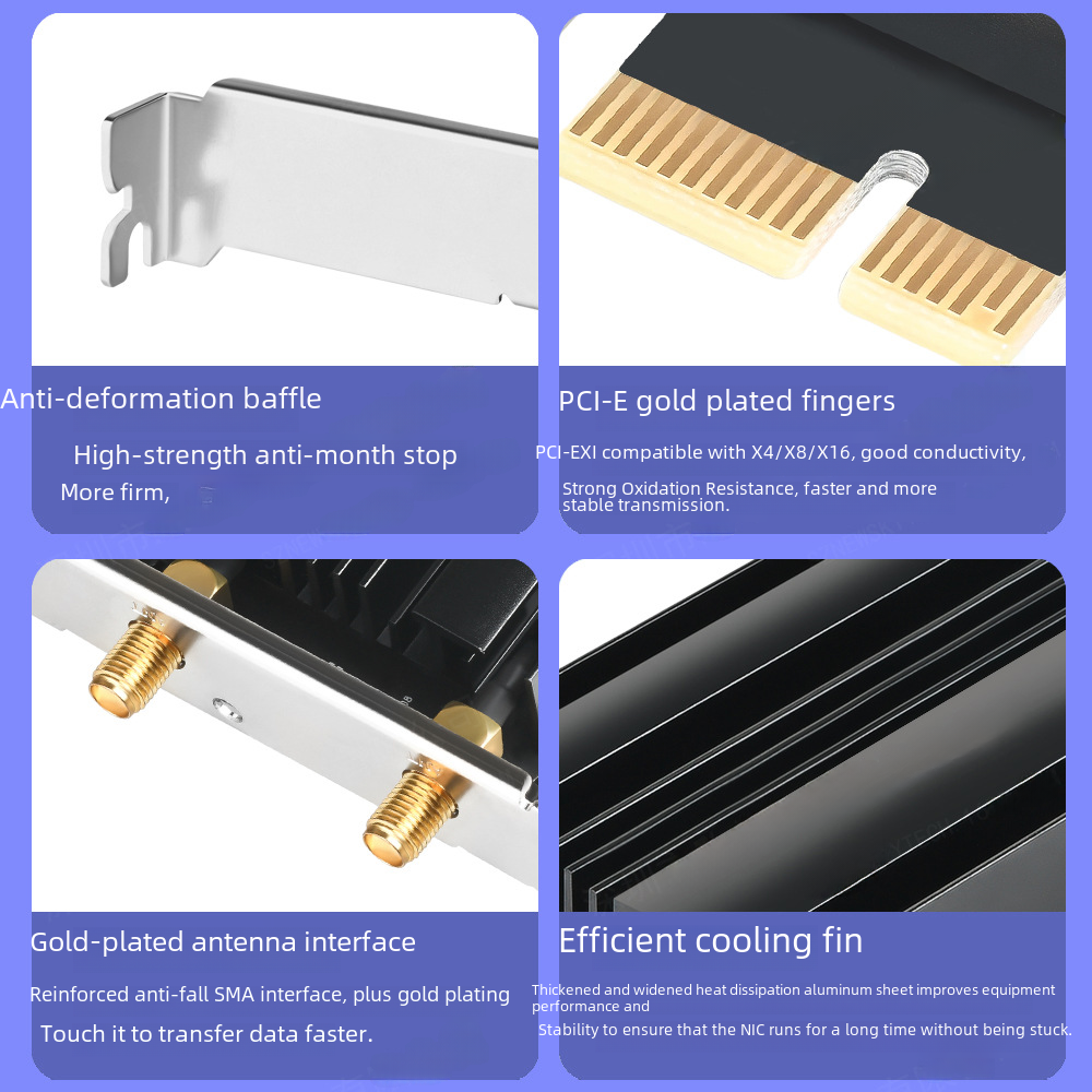ثلاثي الموجات WiFi6E جيجابت نيك MT7922 سطح المكتب المدمج في PCIE استقبال لاسلكي نيك 5.2 بلوتوث