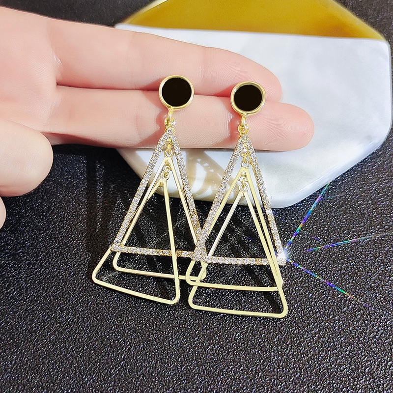 | nameOriginal | Triangular earrings 2024 new European and American exaggerated earrings ins cool circle black earrings women's rhinestone earrings |