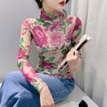 | nameOriginal | Turtleneck mesh bottoming shirt women's long-sleeved slim T-shirt spring and autumn European fashion printed plus size top all-match small shirt |