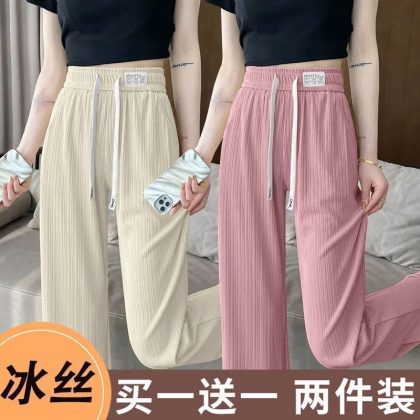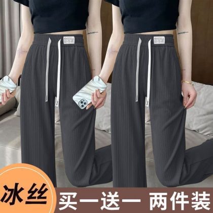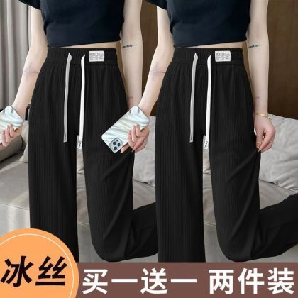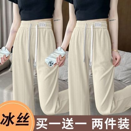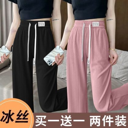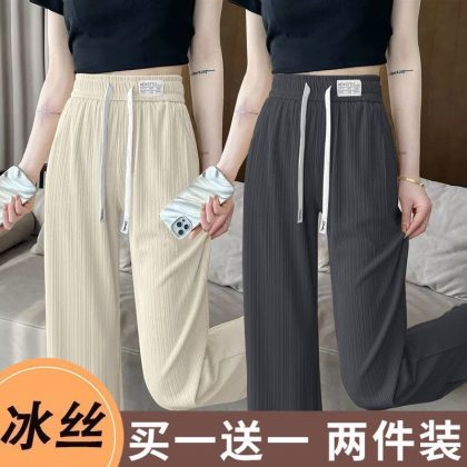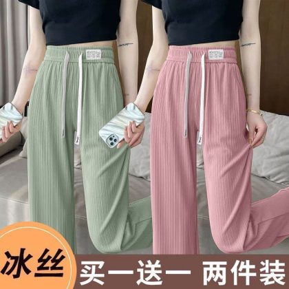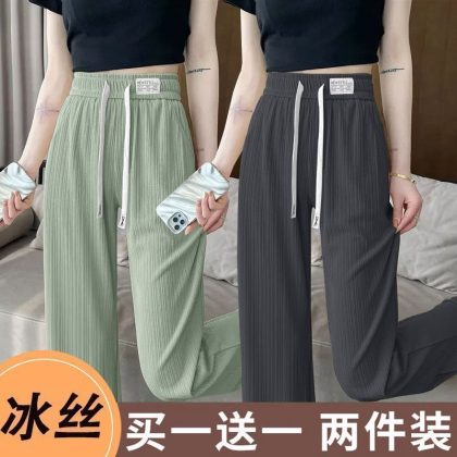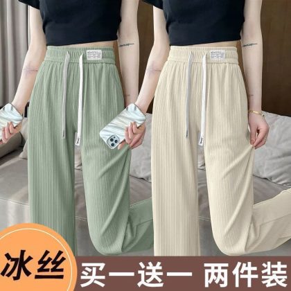 | nameOriginal | [Two Pack] Green Ice Silk Wide Leg Pants Women's Summer Thin High Waist Slimming Straight Pants |