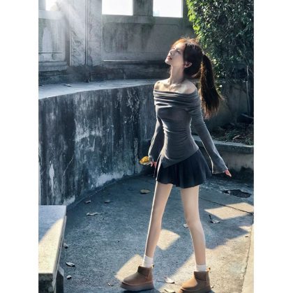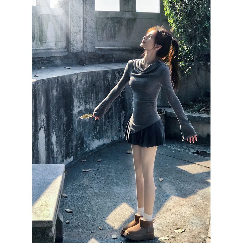 | nameOriginal | Two-piece Suit Women's Pure Desire Shoulder Long-sleeved T-shirt Women's Design Sense Niche Irregular Grey Top Pleated Skirt |