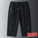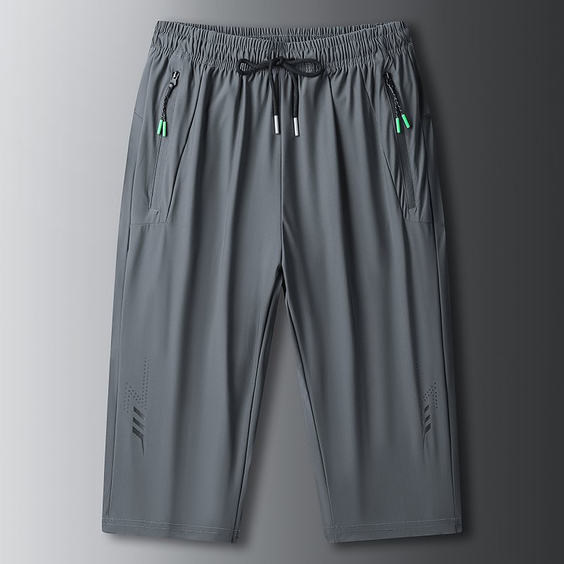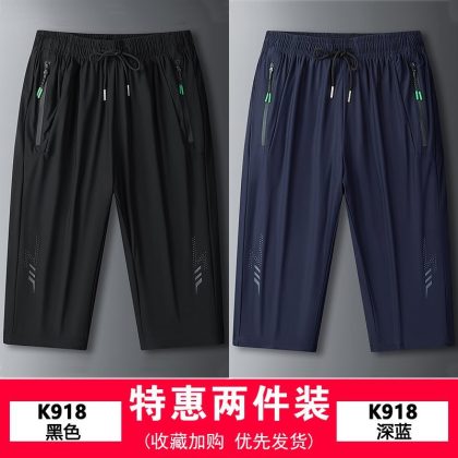 [two pieces] ice silk cropped pants men's summer thin fashionable loose quick-drying plus size pants sports casual shorts