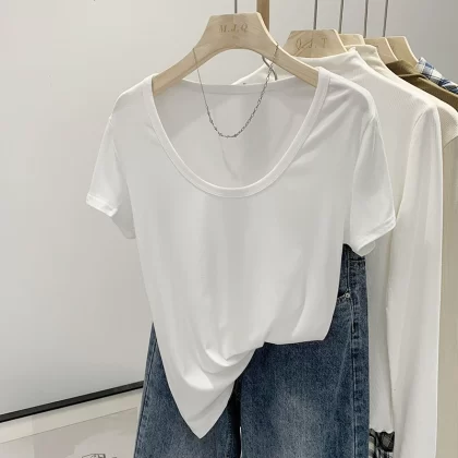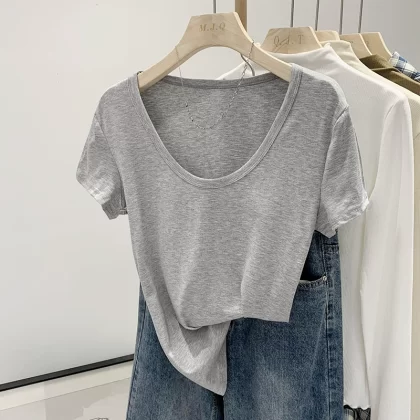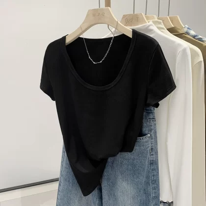 | nameOriginal | U collar 2024 new solid color ins casual top t-shirt |
