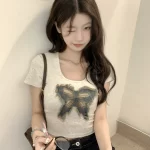 تي شيرت نحيف برقبة على شكل حرف U وأكمام قصيرة لصيف 2024