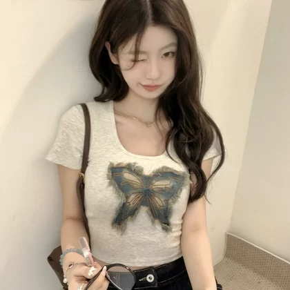 U-neck short-sleeved summer 2024 new slim slim T-shirt