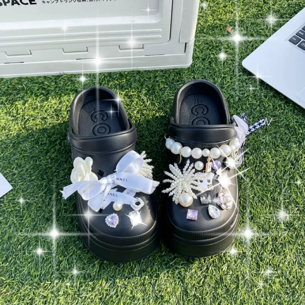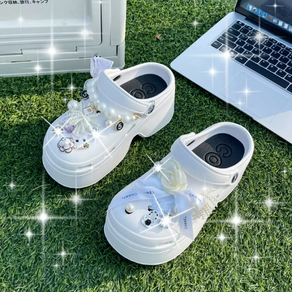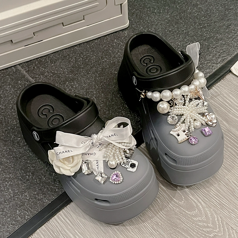 Ultra high heel rhinestone pearl fairy style thick bottom clogs