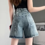 Ultra-high-waisted thin outer-wear straight wide-leg denim shorts