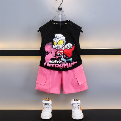 Ultraman Clothes Boys suit 2024 New Arrival Duffy Handsome Boys Summer Korean Style Sleeveless Sports Vest Two-Piece Set