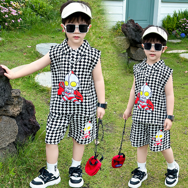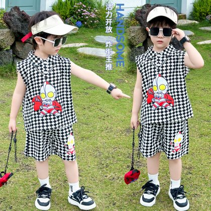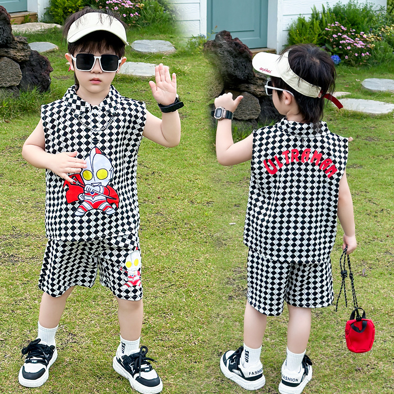 | nameOriginal | Ultraman Thin Plaid Sleeveless Boy's Summer Dress suit Ruffian Handsome New Children's Vest Western Style Baby POLO Shirt |
