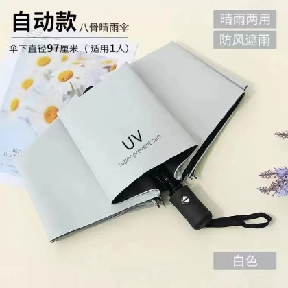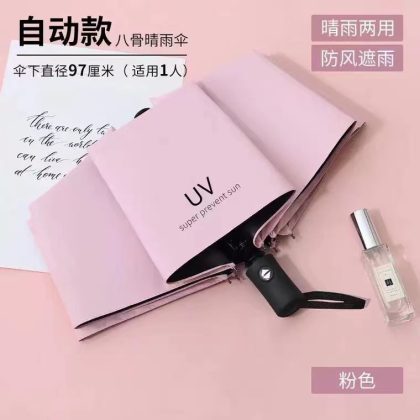 Umbrella uv automatic 8-bone high color value anti-ultraviolet rain dual-purpose umbrella black rubber sunscreen folding umbrella in stock wholesale
