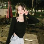 | nameOriginal | Undershirt women's new sweet hot girl slim irregular strap short top girl long sleeve T-shirt |
