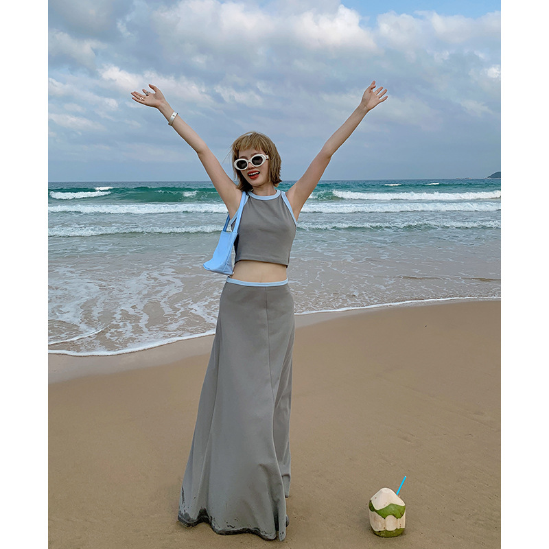 | nameOriginal | UNITY MODE Niche Design Contra Color Stitching Skirt Summer Korean Casual High Waist A- Line Dummy Skirt |