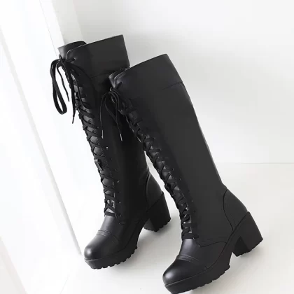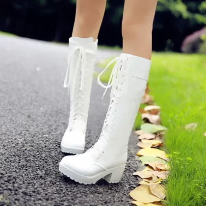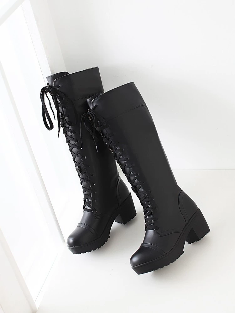 | nameOriginal | Universal cos pure white black brown boots lace-up thick high heels pseudo-girl school uniform loli lolita large size 41234 |