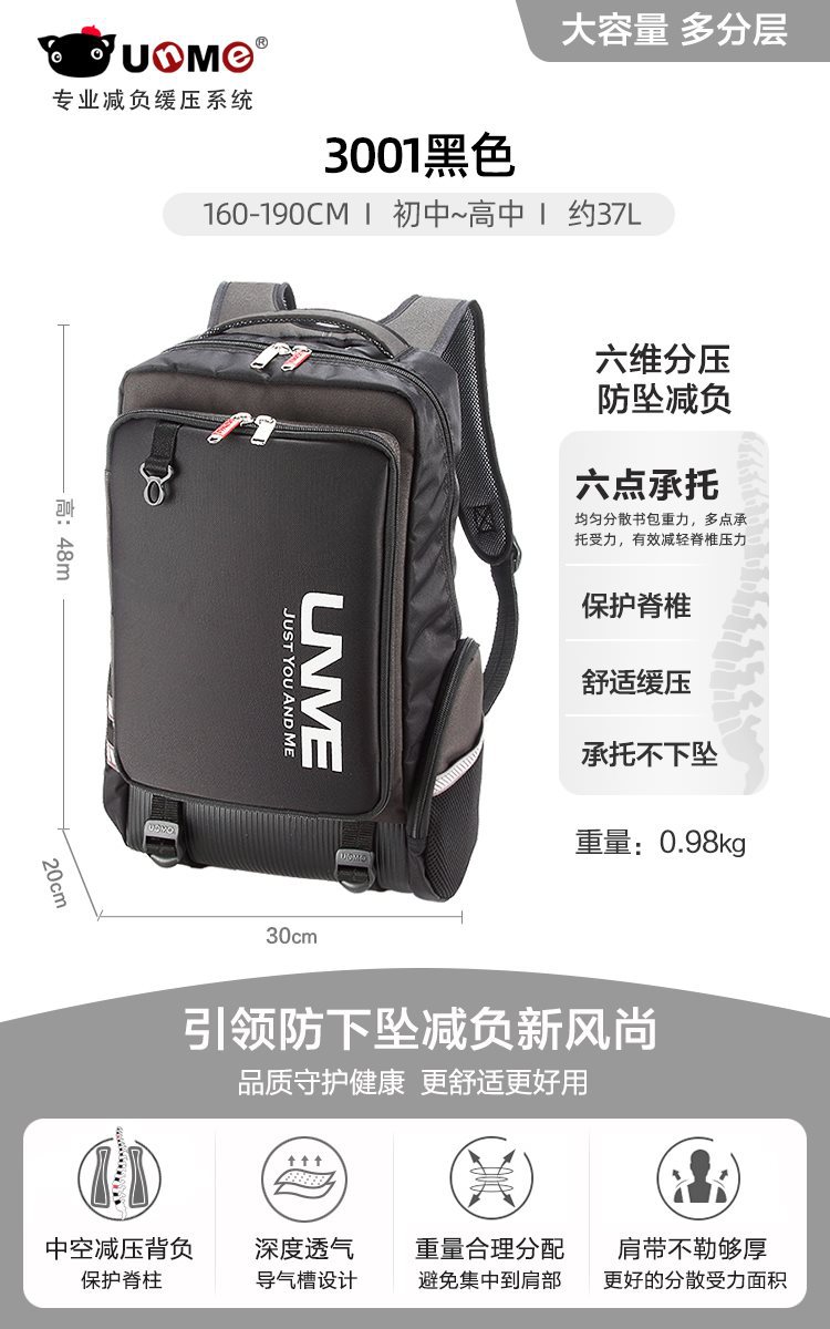 Unme new junior high school students large capacity schoolbag men's burden reduction ridge protection middle school women's grade 3-6 waterproof ultra light decompression