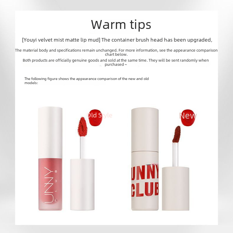 | nameOriginal | UNNY Lip Mud Velvet Matte Fog Tea Makeup Lipstick Lip Gloss Color Student Parity White Official Flagship Store |