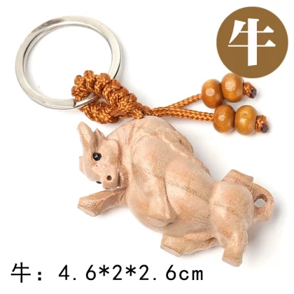 منحوتات خشب الخوخ غير المطلية لحيوانات الأبراج الاثني عشر: الجرذ، الثور، النمر، الأرنب، التنين، الأفعى، الحصان، الأغنام، القرد، الدجاج، الكلب، والخنزير تميمة قلادة على شكل مفتاح