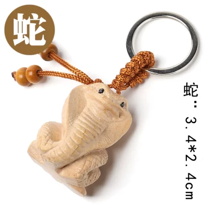 Unpainted peach wood carving twelve zodiac animals: rat, ox, tiger, rabbit, dragon, snake, horse, sheep, monkey, chicken, dog, pig key pendant mascot