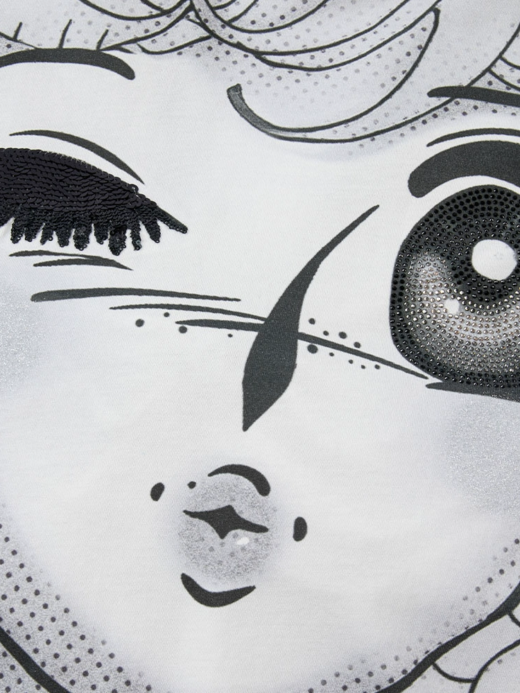 | nameOriginal | UOOYAA/ Wuya 2024 new autumn style hot diamond beaded embroidered comic girl printed bow T-shirt |