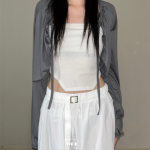 | nameOriginal | Up niche charcoal gray strappy short cardigan jacket shawl |