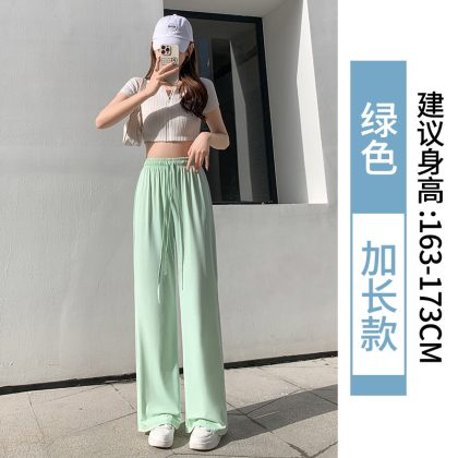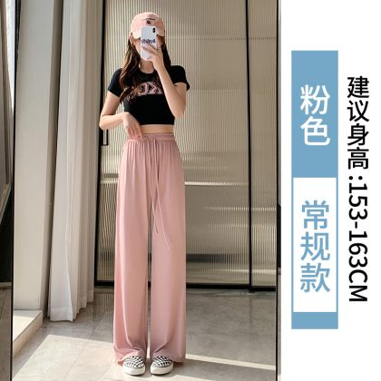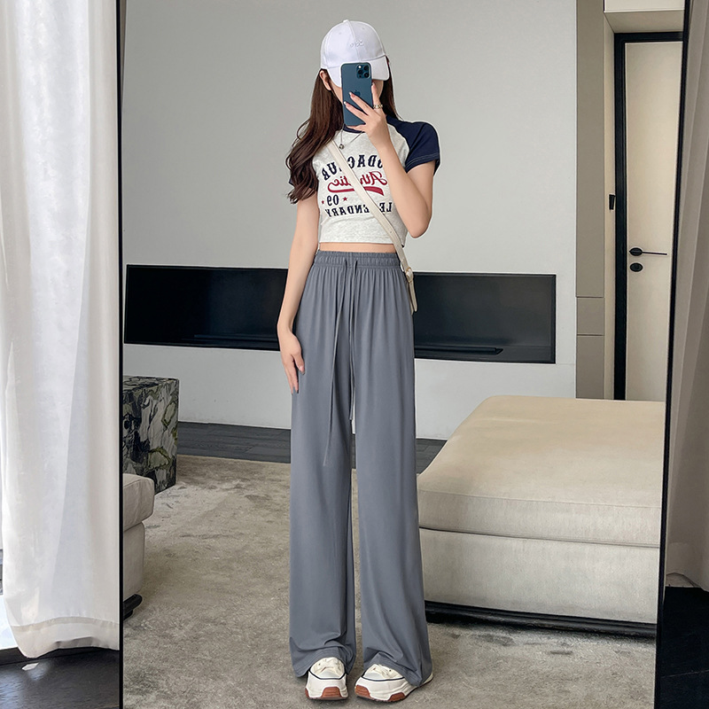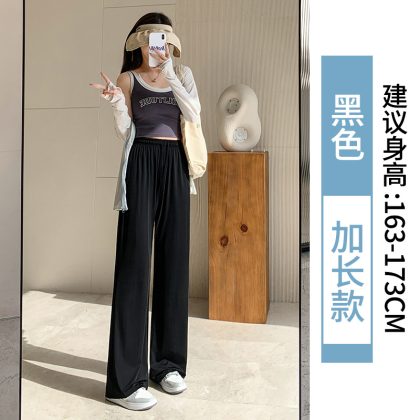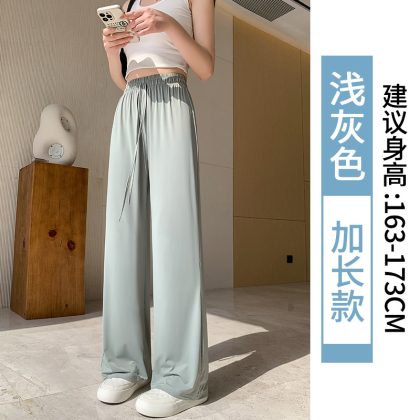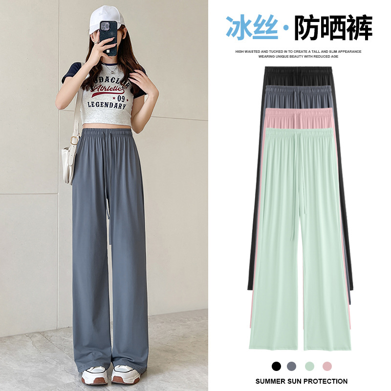 UPF50 + summer Thin Ice Silk sports pants women's high waist loose straight casual wide leg home cool sun protection pants