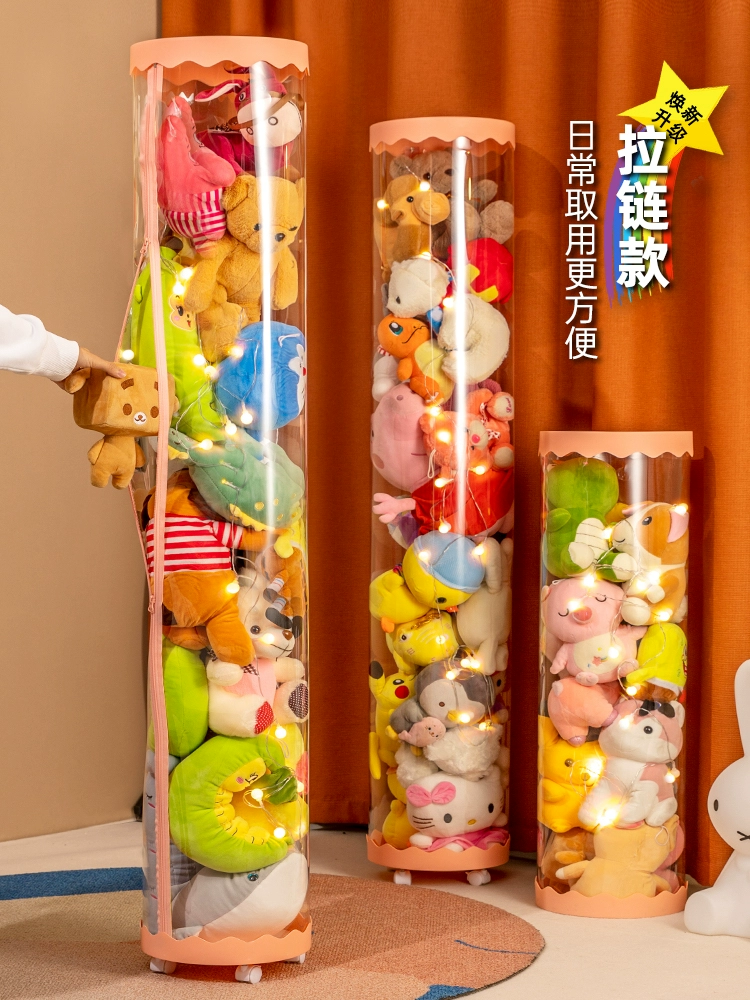 | nameOriginal | Upgraded zipper doll storage tube plush toy artifact transparent cylindrical basket children's clothing doll bucket storage box |