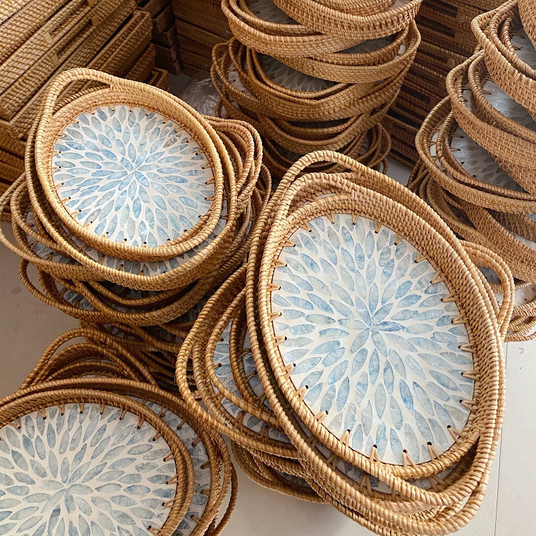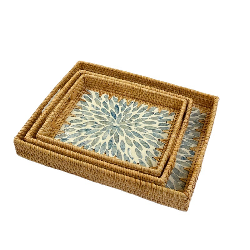 | nameOriginal | US4A tray rectangular tea set Teng woven shell storage tray cup tea pot tea pot tea tray Large Medium Small size Vietnam |