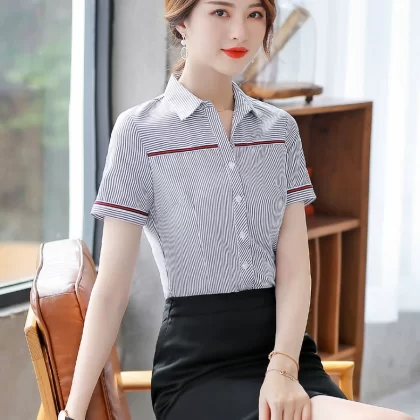 | nameOriginal | V-neck business fit short-sleeved hotel office shirt |