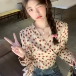 | nameOriginal | V-neck French floral spring strappy long-sleeved top |