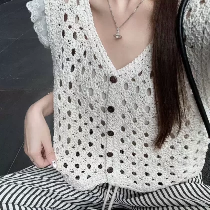 | nameOriginal | V-neck lace stitching hollow floor-length crocheted vest |