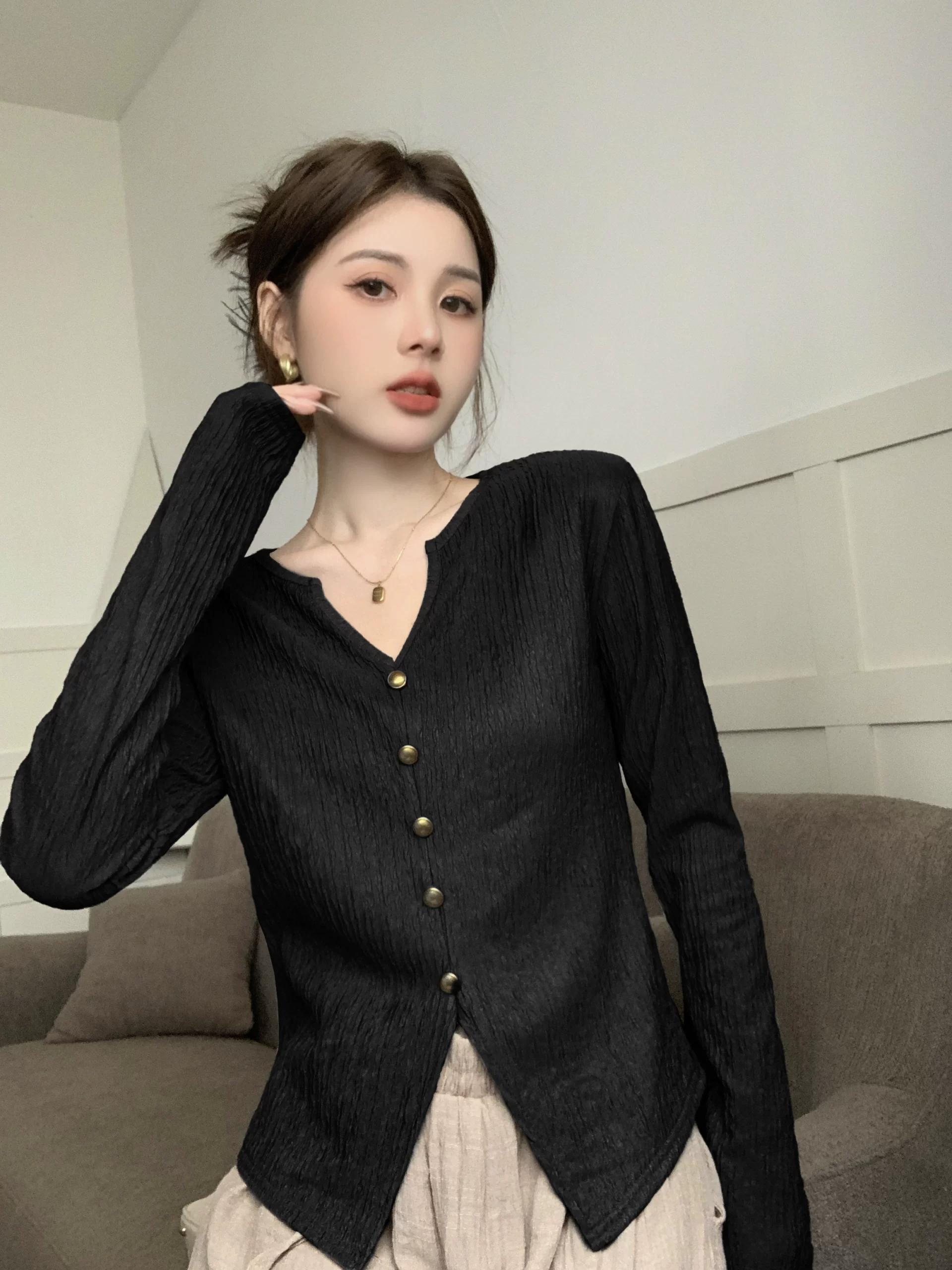 | nameOriginal | V-neck long-sleeved right shoulder niche fat mm slimming top T-shirt |