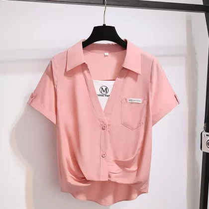 | nameOriginal | V-neck shirt new style pleated slim letter fake two pieces |