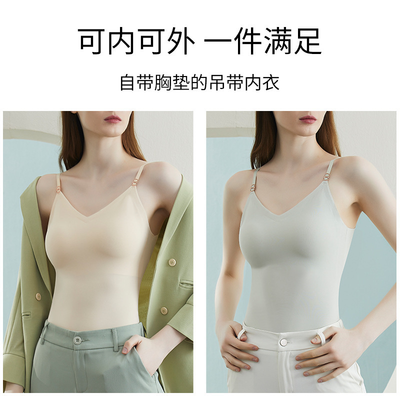 | nameOriginal | V-neck vest long Wireless sling seamless breathable simple solid color inner removable latex pad vest |