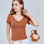 | nameOriginal | V-neck waist-length cotton belt breast pad bra-free cup one-piece half-sleeve T-shirt short-sleeve home yoga women |
