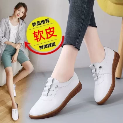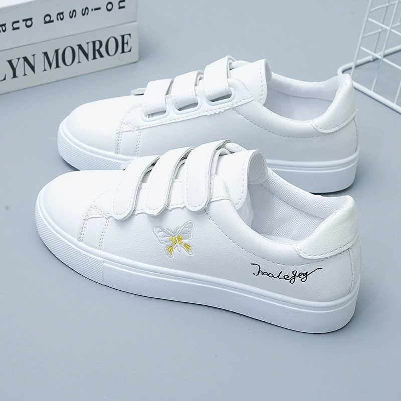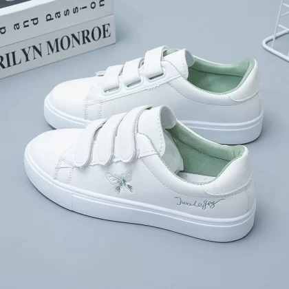 Velcro white shoes autumn women's shoes 2024 new Korean version versatile casual student leather daily flat shoes