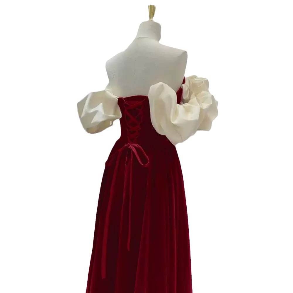 | nameOriginal | Velvet toast dress bride 2024 New Spring Wine Red Wedding small people can wear engagement dress at ordinary times |