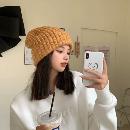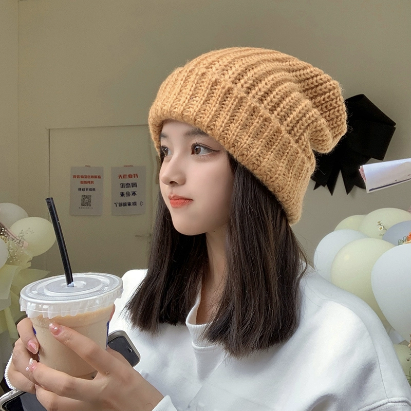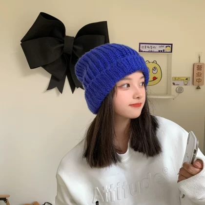 | nameOriginal | Versatile and versatile small knitted hat that shows your face, Japanese-style pile hat, ear protection, warm Klein blue woolen hat, Korean version trendy |