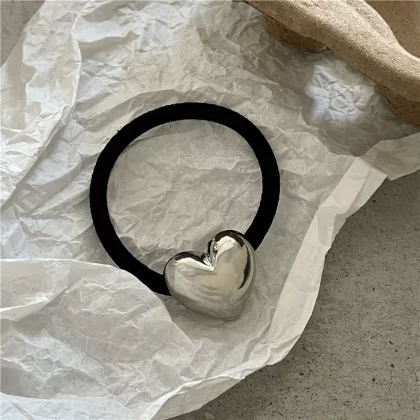 Versatile texture alloy love girl black hair tie