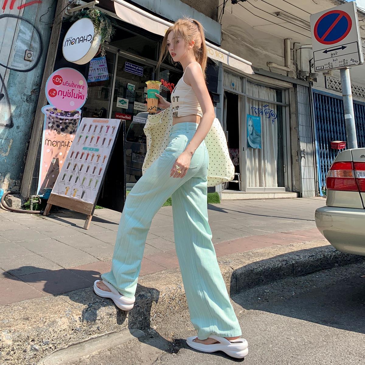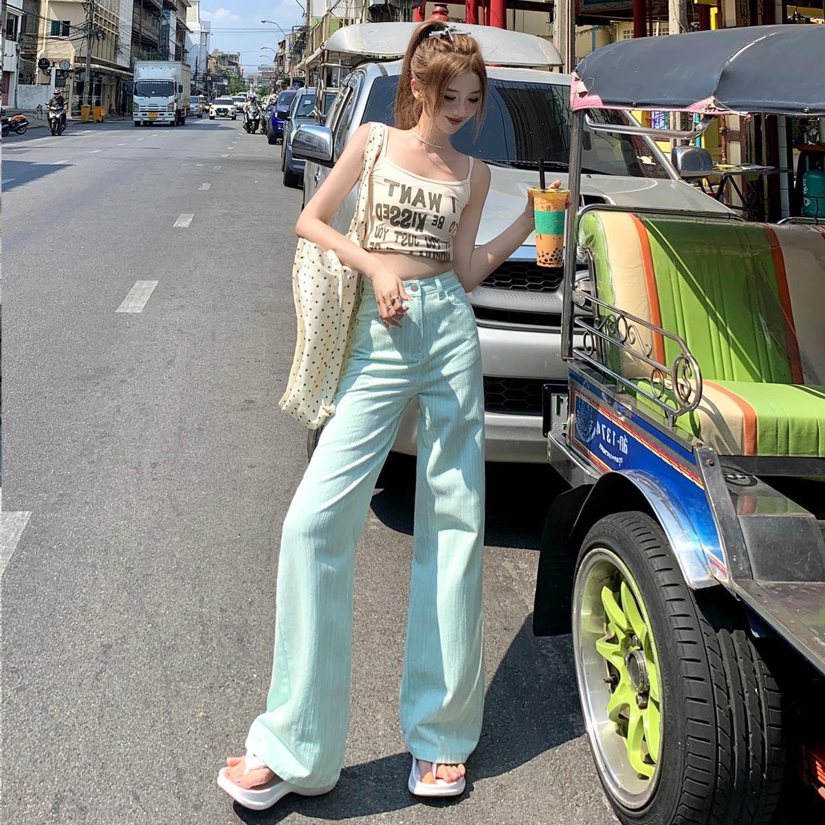 | nameOriginal | Vertical Mint Green High Waist Wide Leg Pants Women's 2024 Summer New Loose Slimming Straight Tube Texture Dopping Pants |