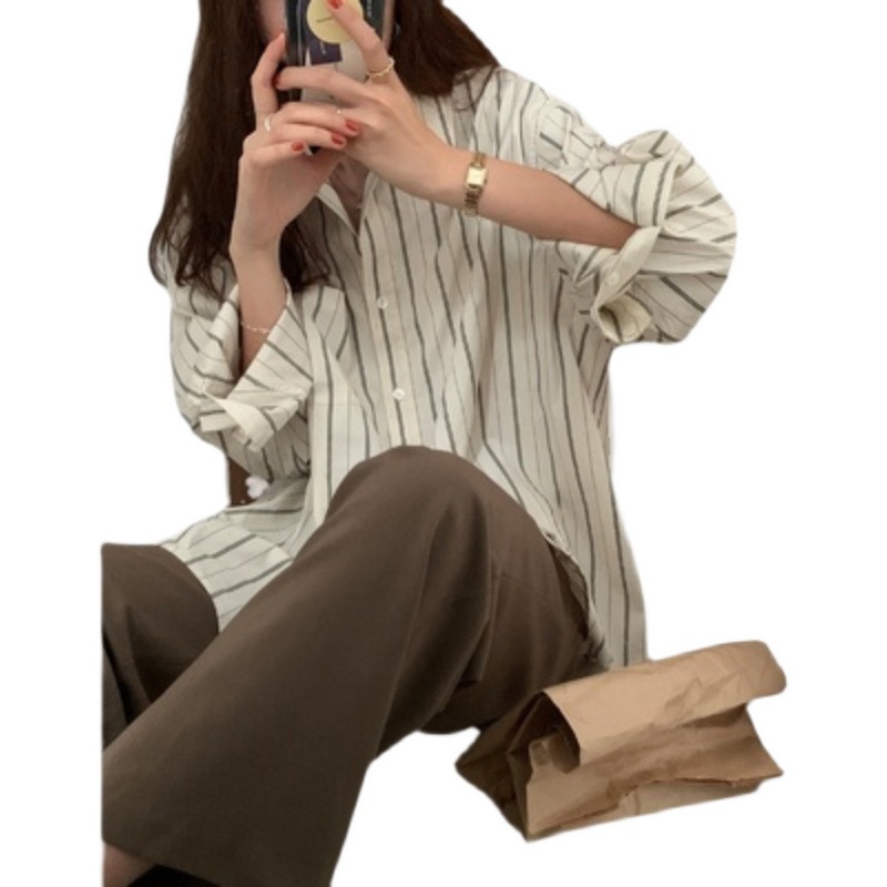 | nameOriginal | Vertical Stripe High-end Sense Shirt Long-sleeved 2024 Spring and Autumn New Fashion Loose Hong Kong Style Shirt Women's Stacked Top |