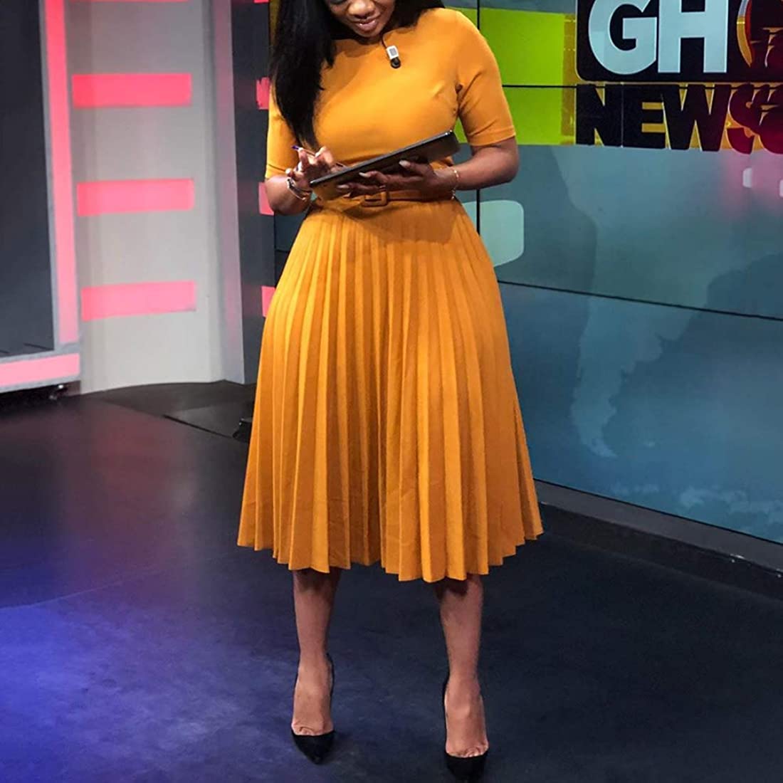 | nameOriginal | VERWIN Short Sleeve Round Neck Women's Maxi Dress Pleated Plain Belt Dress |