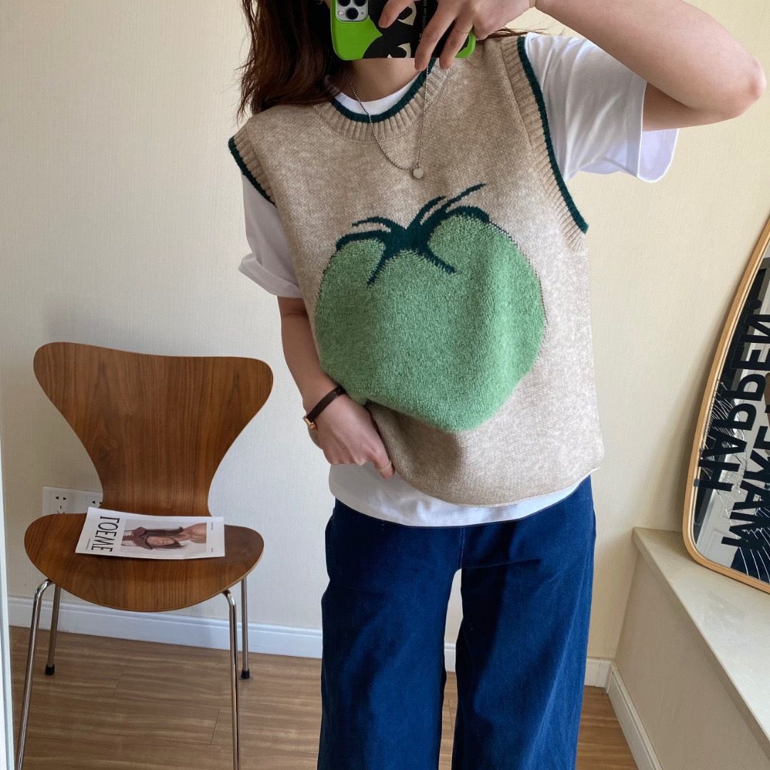 | nameOriginal | Vest Stereo Jacquard Green Big Tomato Knitted Sweater Women's Spring and Autumn New Knitted All-match Vest Trendy Women |